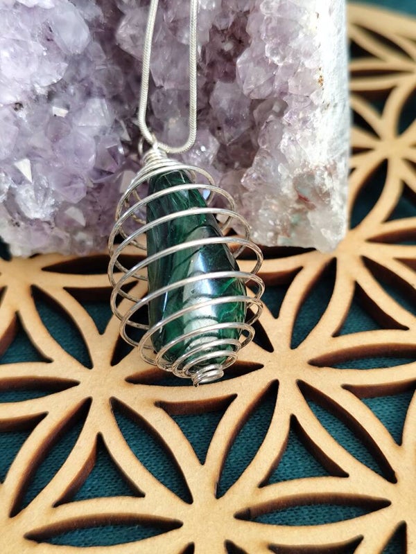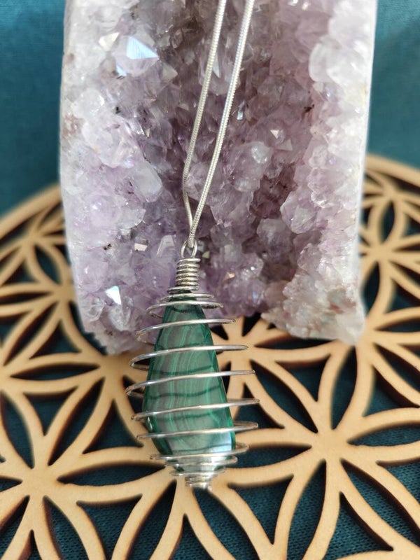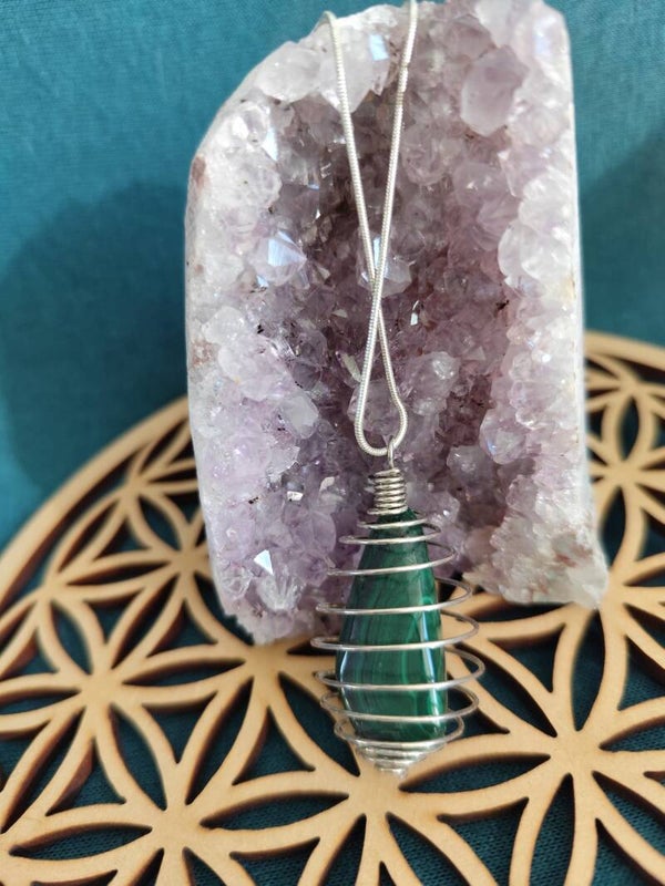 Lorsque le chakra du cœur est ouvert et en parfaite harmonie avec les autres chakras, il favorise la paix intérieure, la sérénité d’esprit, la bienveillance, l’amour inconditionnel et la joie de vivre. Il vous aide à communiquer, à coopérer et à faire confiance. Pour décupler les vertus d’un pendentif en malachite lorsqu’il est porté sur une chaîne par exemple, vous pouvez soit l’associer à un cristal de roche. Le cristal de roche est un amplificateur permettant à tout minéral de développer pleinement ses capacités. Elle est cependant à éviter avec des pierres dynamisantes de type oeil de tigre, oeil de faucon, oeil de taureau, jaspe paysage ou encore jaspe rouge… les pouvoirs seront inversés.
